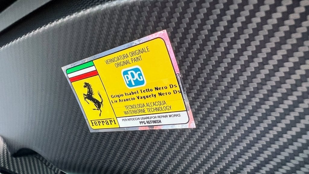 The Tailor Made Ispirazioni special limited series was created in 2021 to highlight designs from 3 collections: Scuderia, Classica and Inedita. This SF90 Stradale was inspired by color block designs with sharp contrasting colors. Playing off the colors of the tarmac, the SF90 Stradale exterior is a rich Grigio Isabel with Arancio Vaguely (orange) accents. The carbon fiber racing seats are completed with black Ultrasuede, Cordura Arancio inserts and black leather trim. Arancio stitching accents the cabin and Cavalino on headrests.